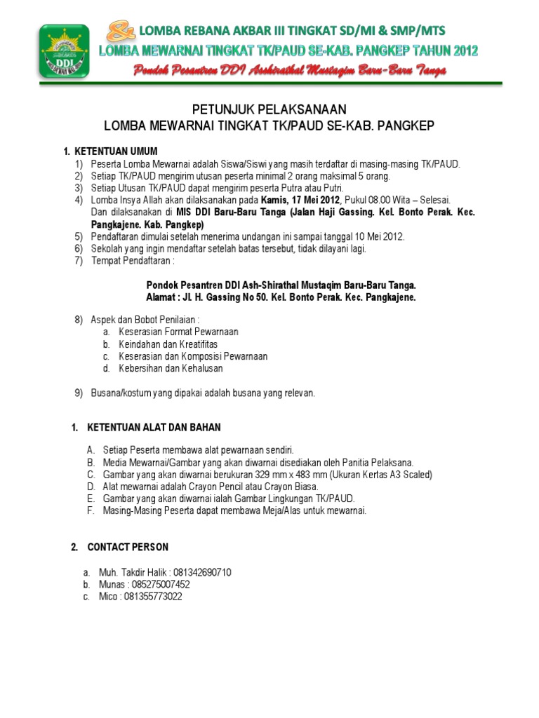 Blangko Format Penilaian Lomba Mewarnai Gambar | pontren.com