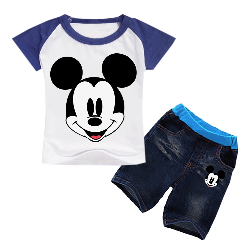 Setelan Kaos T-Shirt Anak Laki-laki / Perempuan Lengan Pendek Gambar Mickey Mouse + Celana Denim | Shopee Indonesia