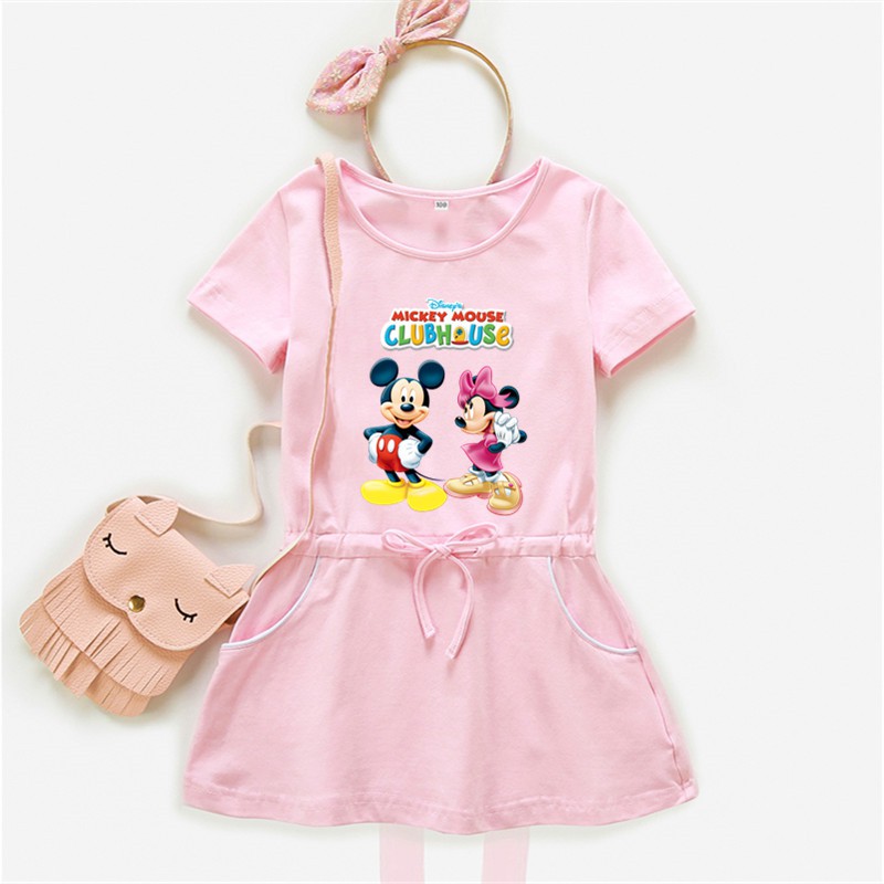 Dress Katun Casual Anak Perempuan Lengan Pendek Gambar Mickey Mouse untuk Pesta / Liburan | Shopee Indonesia