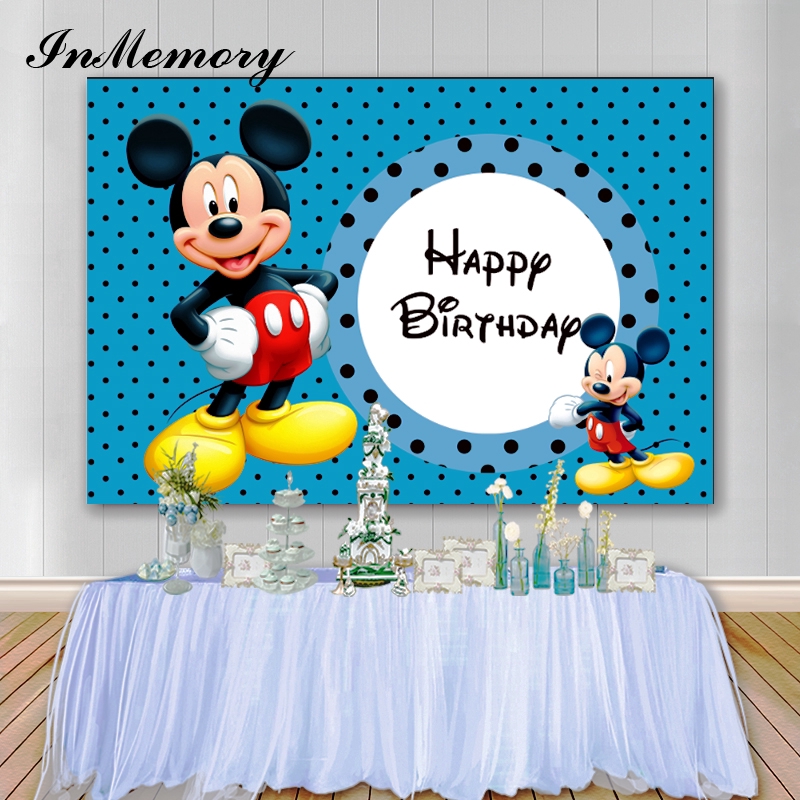 Latar Dekorasi Fotografi Gambar Mickey Mouse Warna Hitam Biru Untuk Studio Foto | Shopee Indonesia