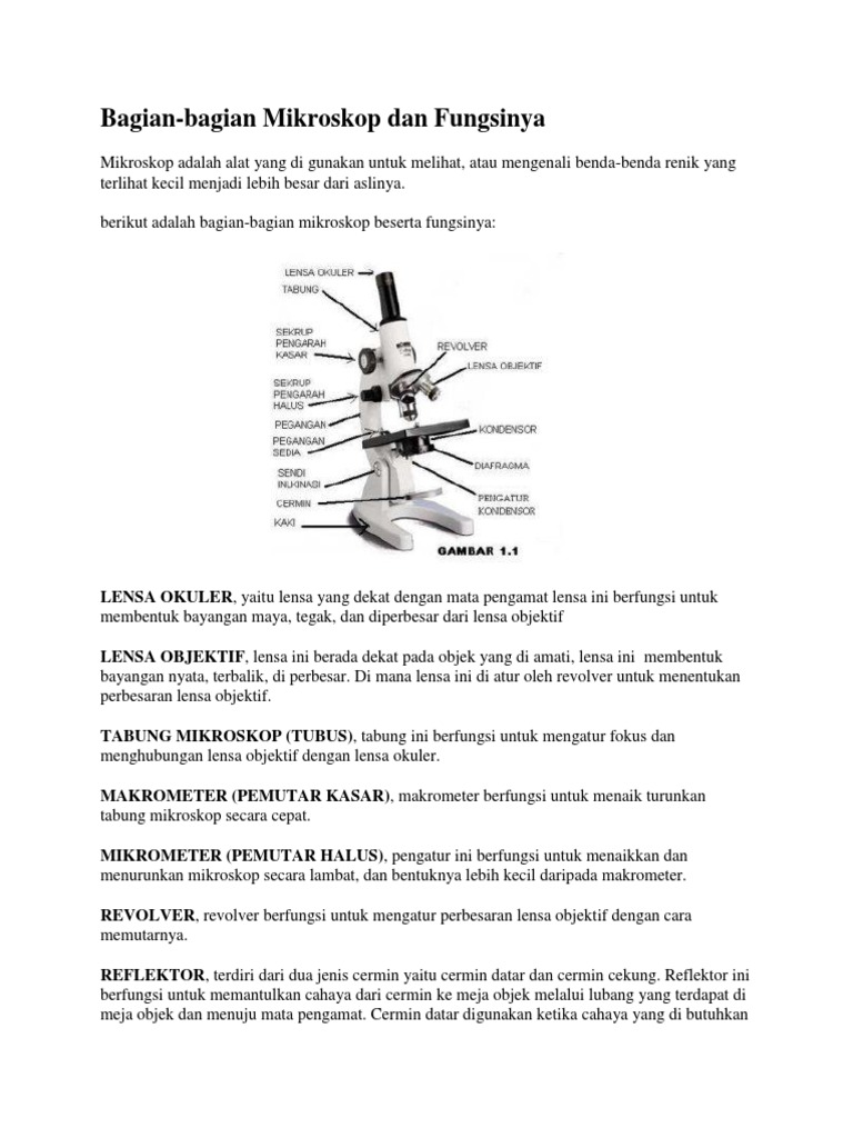 Bagian Bagian Mikroskop Dan Fungsinya Pdf - Berbagai Bagian Penting