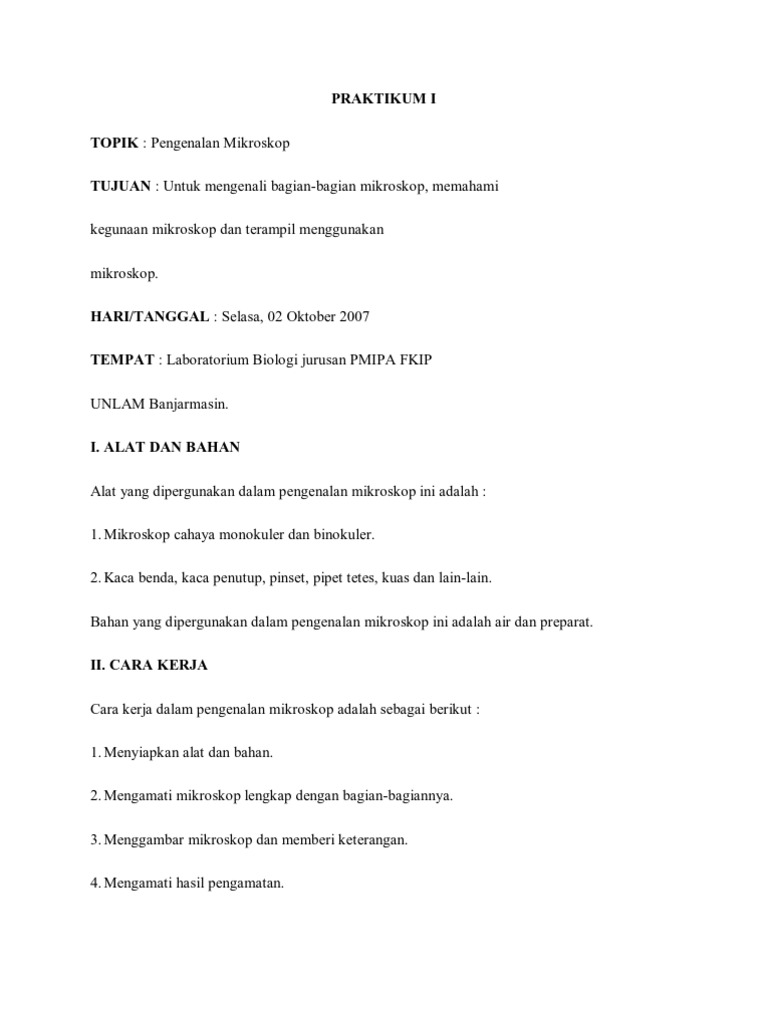 PRAKTIKUM I TOPIK : Pengenalan Mikroskop TUJUAN