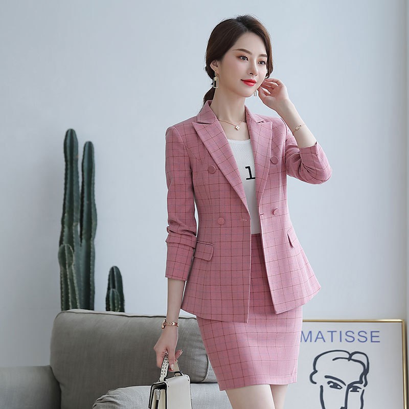 Blazer Kotak-kotak setelan jas wanita ramping Pakaian profesional lengan panjang jas jas wanita busa | Shopee Indonesia