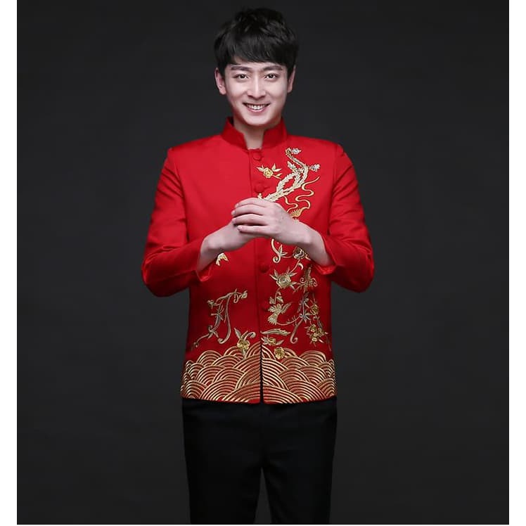 MAN.C.024 BAJU CHEONGSAM PRIA MODEL KOKO MERAH GAMBAR PHOENIX TRADISIONAL | Shopee Indonesia