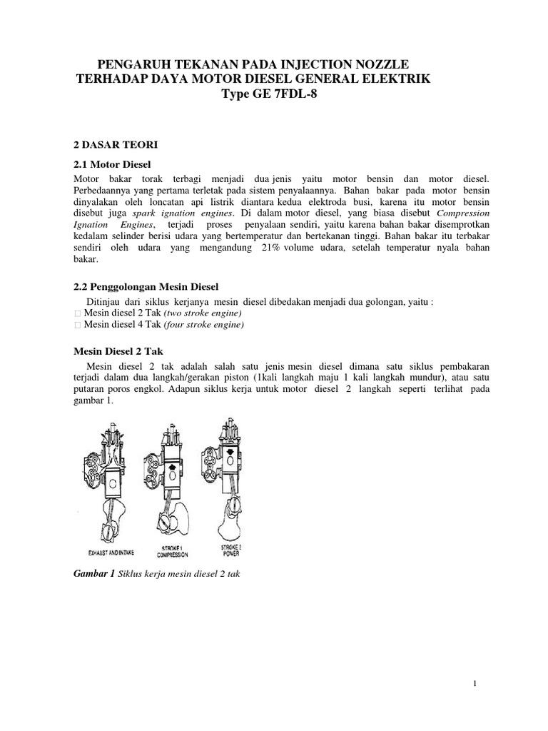 Pengaruh Tekanan Pada Injection Nozzle Terhadap Daya Motor Diesel General Elektrik Type GE 7FDL-8