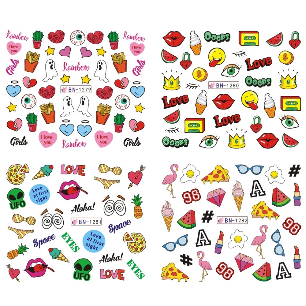 Pizza Chips Lips Cute Cartoon Cat Nail Sticker | Shopee Singapore