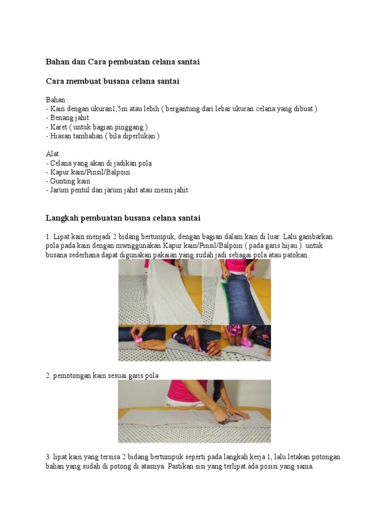 Belajar Kurikulum 2013 : Bahan dan Cara pembuatan celana santai