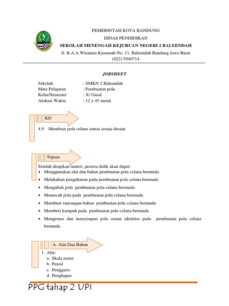 GURU BERBAGI | RPP Pembuatan Busana Industri XII