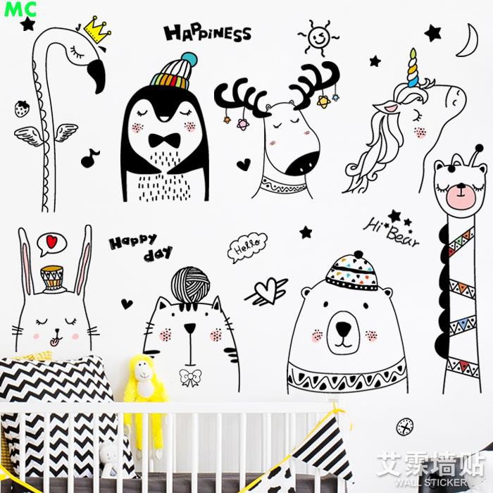 Stiker dinding, Hewan kartun kamar anak-anak yang sederhana, TK kamar tidur nordic ins stiker, Diri | Shopee Indonesia