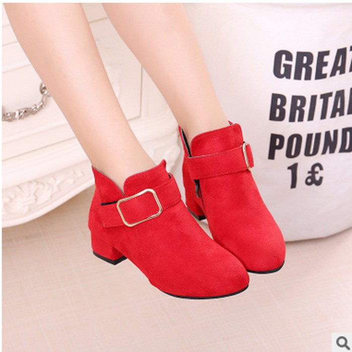 sepatu boot anak perempuan import heel button red | Shopee Indonesia
