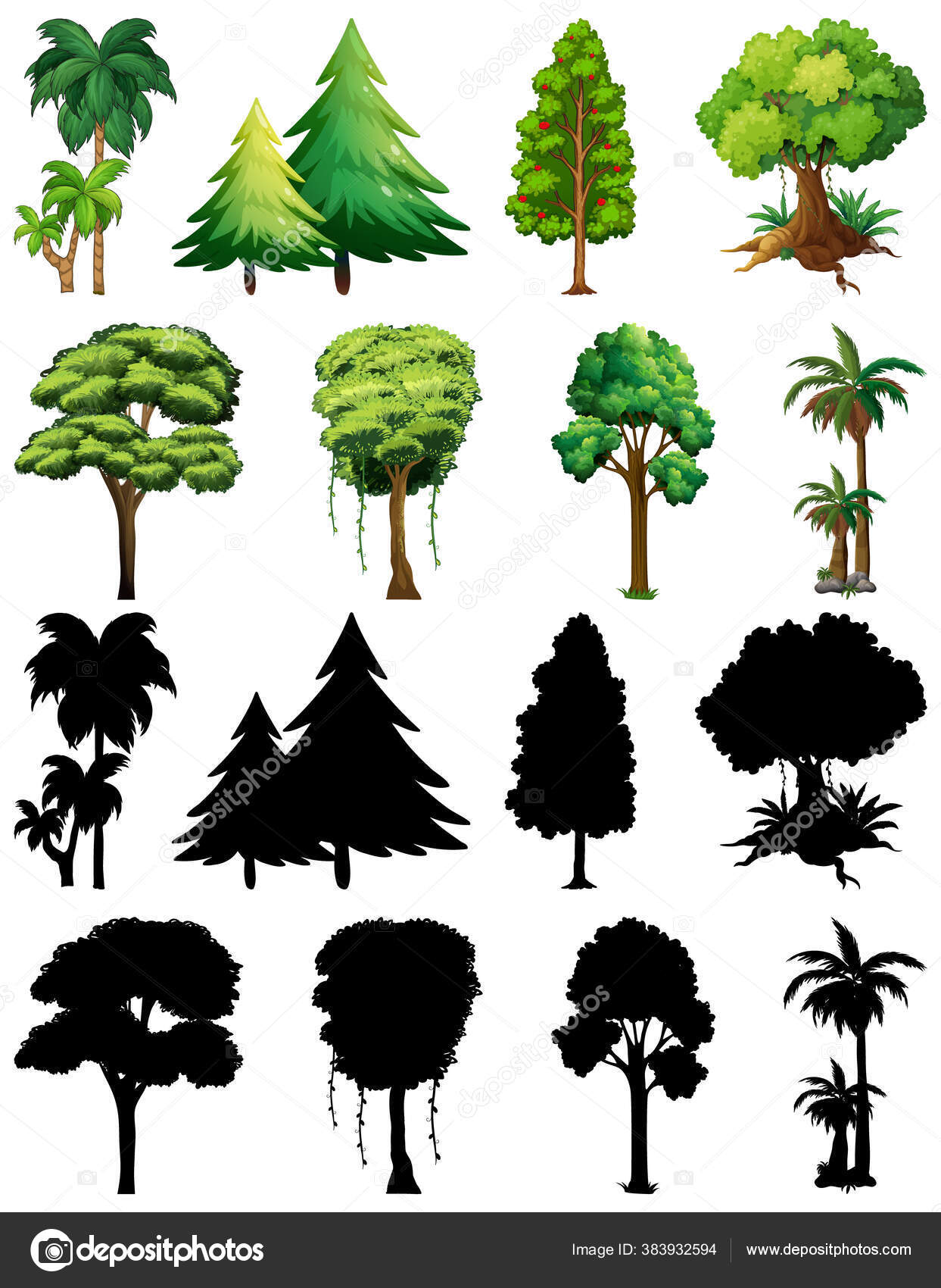 Set Tanaman Dan Pohon Dengan Ilustrasi Siluet Nya Stok Vektor © interactimages #383932594