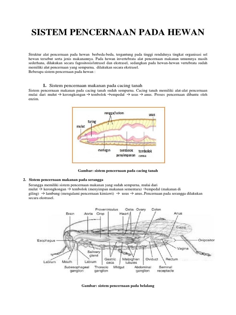 Sistem Pencernaan pada Hewan vertebrata dan invertebrata | KASKUS ARCHIVE