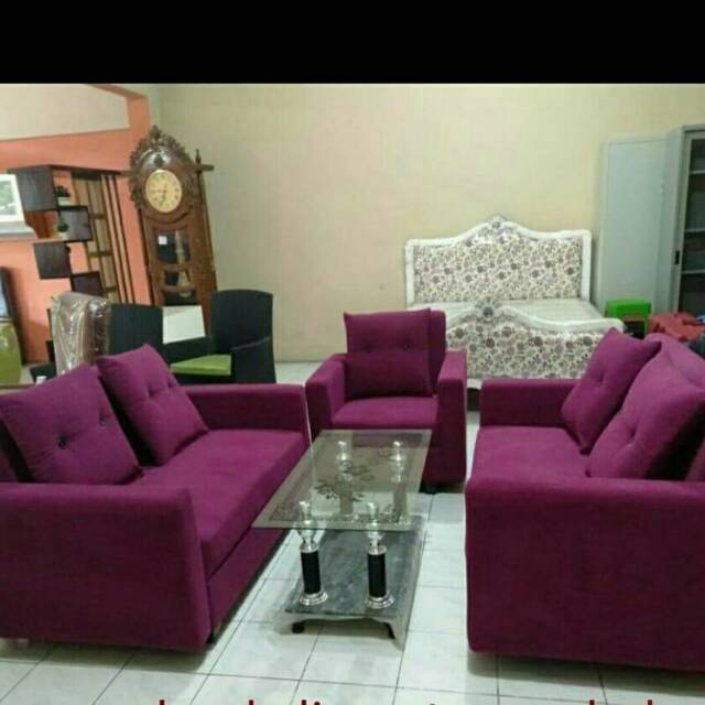 Jual sofa minimalis kayu 221 warna ungu plus bantal plus meja bentuk L - Kab. Tangerang - Toko MajuBaru Furnituree | Tokopedia