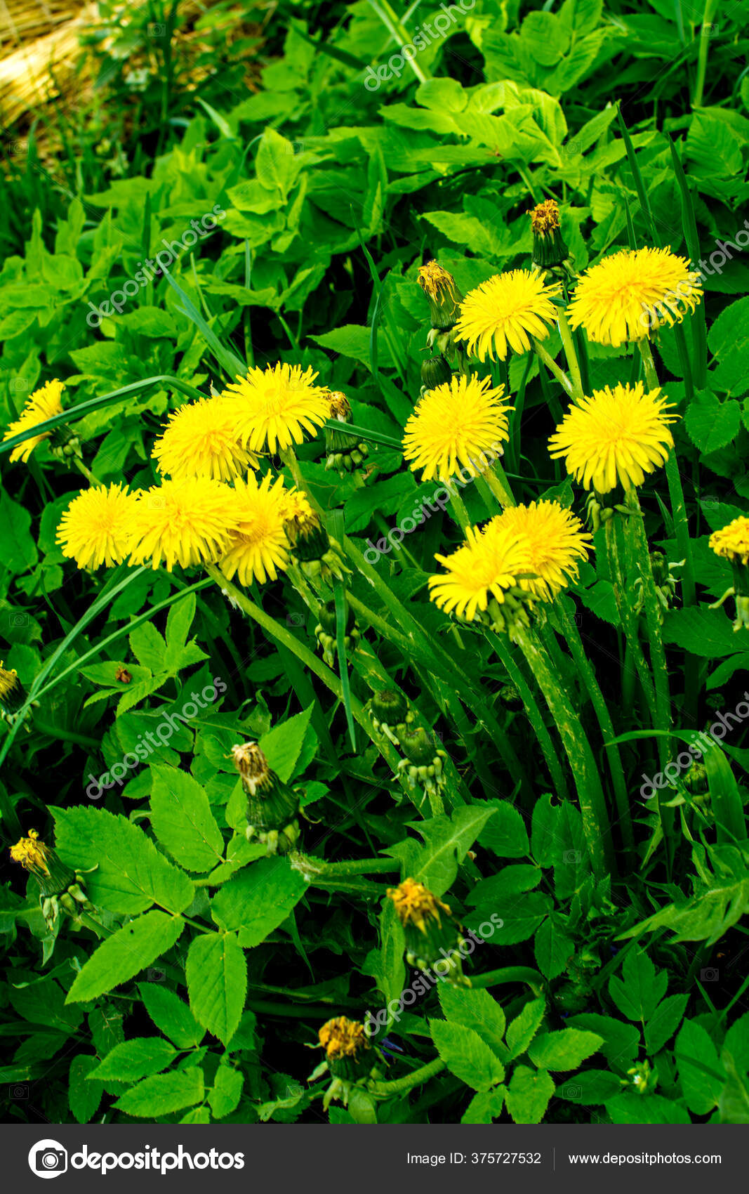 Tanaman Dandelion Dengan Kuncup Kuning Berbulu Bunga Kuning Dandelion Tumbuh — Stok Foto © weha #375727532