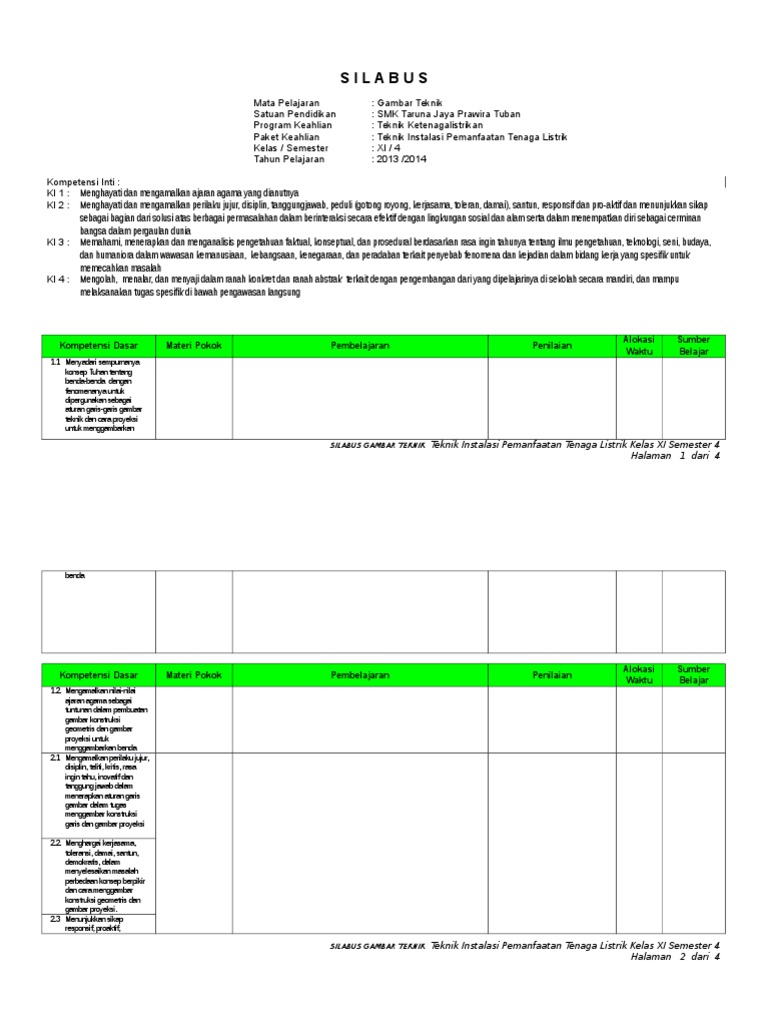Silabus gambar teknik kelas xi semester 2
