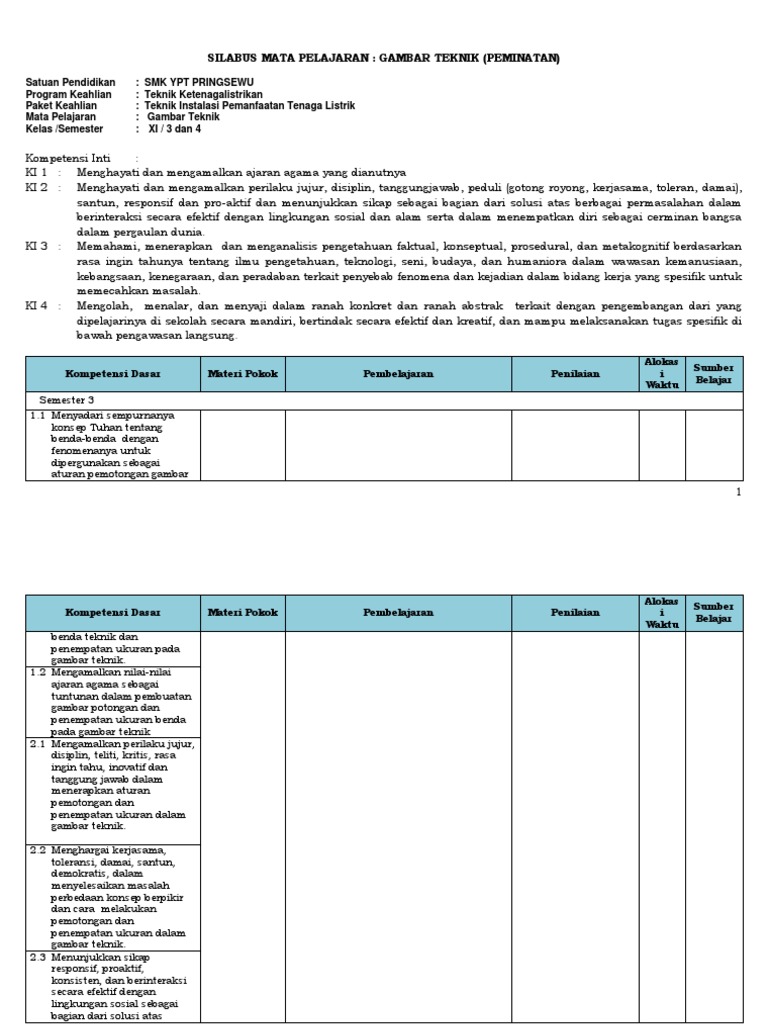 Silabus gambar teknik kelas xi semester 1