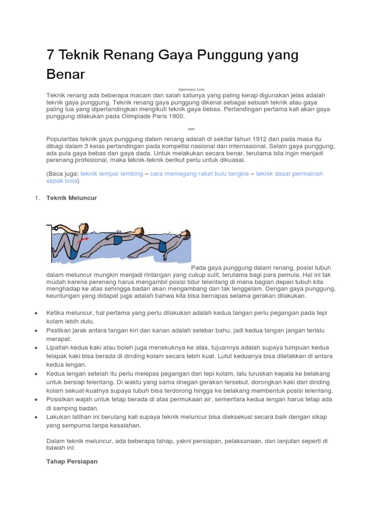 Renang Gaya Punggung 7 Teknik Renang Gaya Punggung Lengkap dengan Gambarnya | Penjaskes.Co.Id