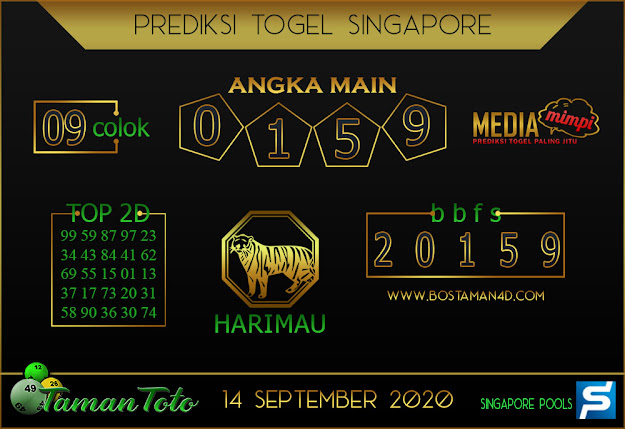 Prediksi Togel SINGAPORE TAMAN TOTO 14 SEPTEMBER 2020