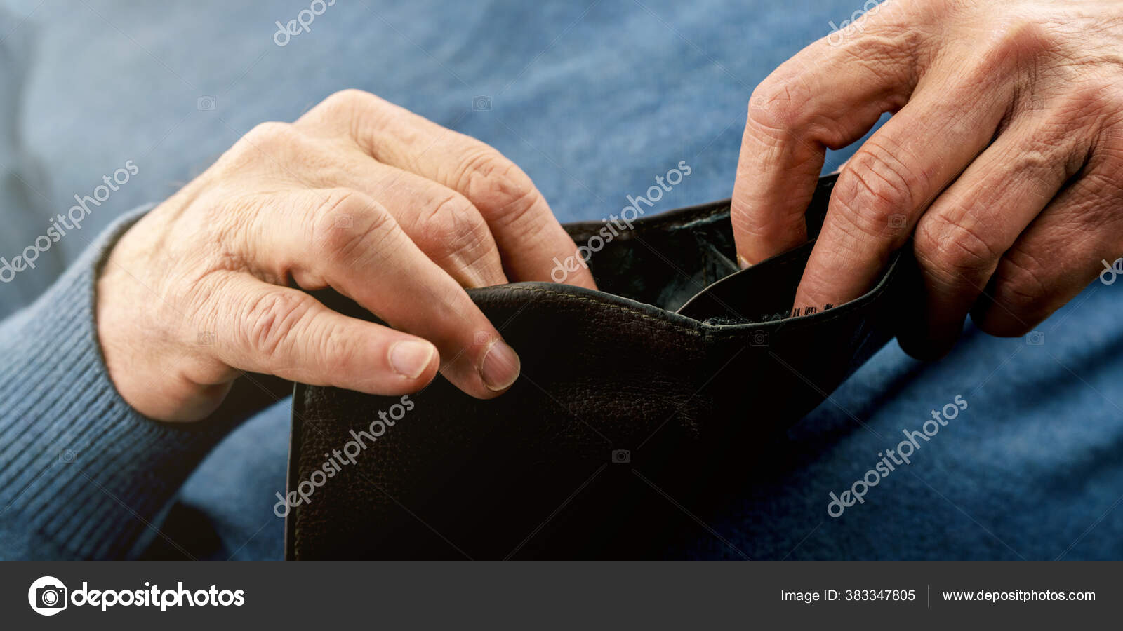 Pensiunan tua mencari uang dalam dompet hitam kosong — Stok Foto © yaroslaf #383347805