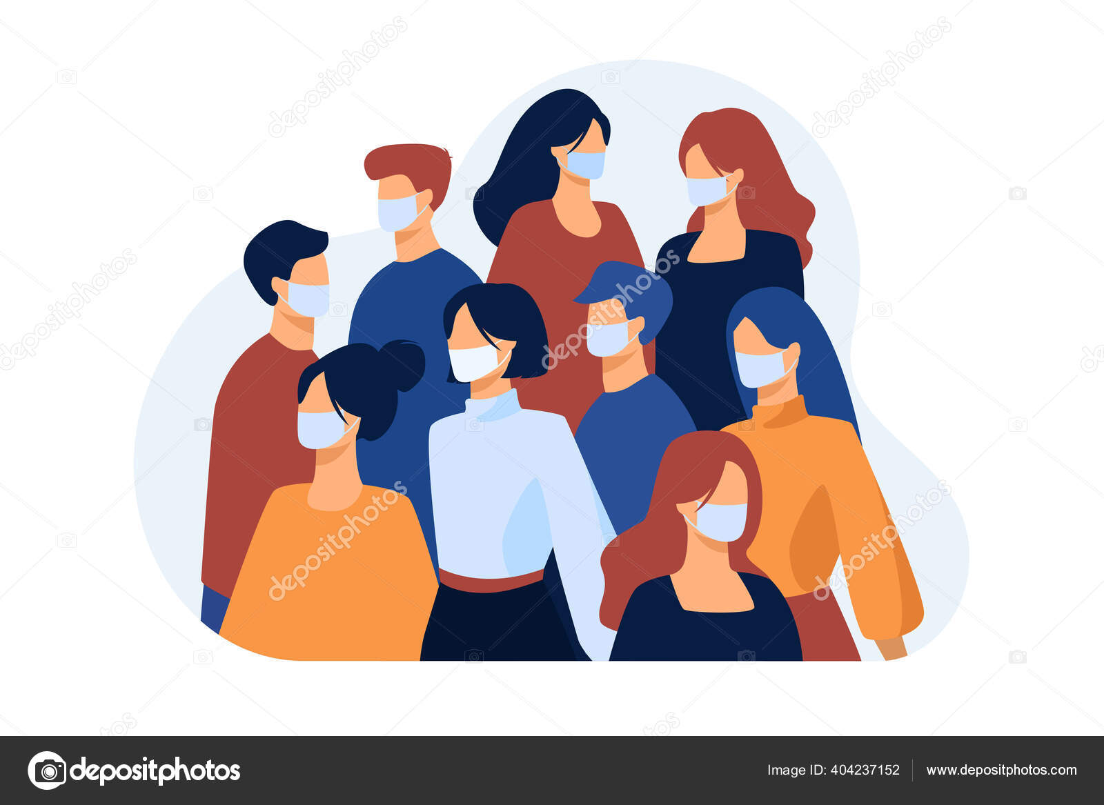 Kerumunan Orang Memakai Masker Medis Wajah Luar Infeksi Menyebarkan Pencegahan — Stok Vektor © mstjahanara99 #404237152