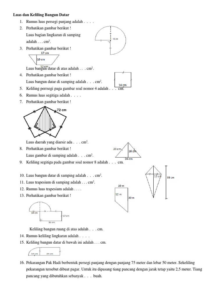Soal No. 1 Perhatikan gambar bangun datar berikut! Tentukan: a) Luas daerah yang diarsir b) Keliling bangun - PDF Download Gratis