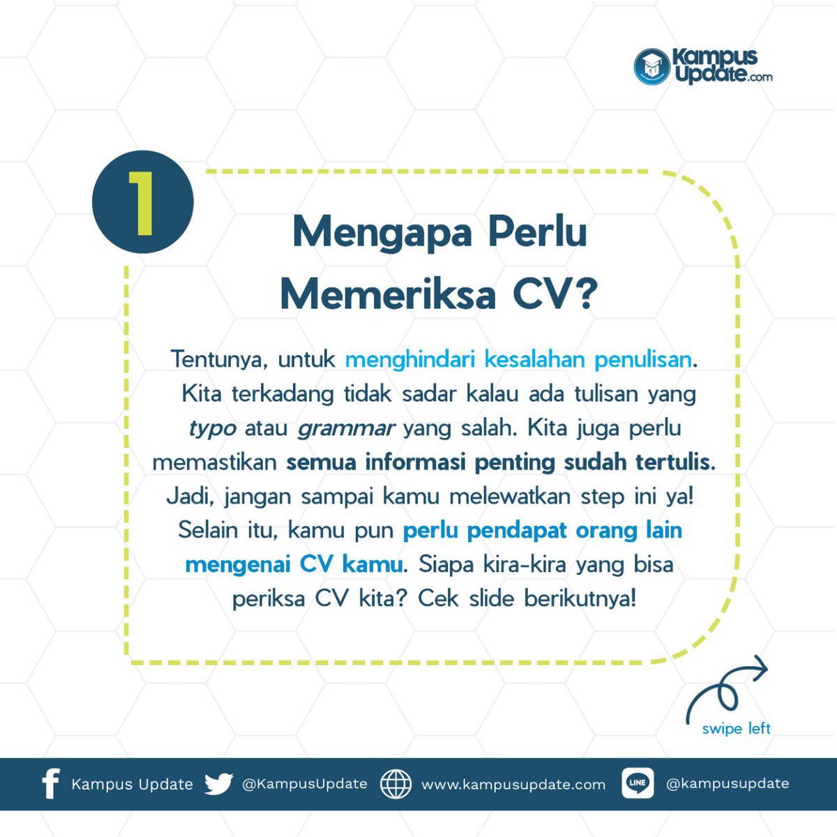Kampus Update : “Mengapa perlu memeriksa CV? Tentunya, untuk menghindari kesalahan-kesalahan dalam penulisan seperti typo dan salah grammar.… https://t.co/Om92udHGzV”