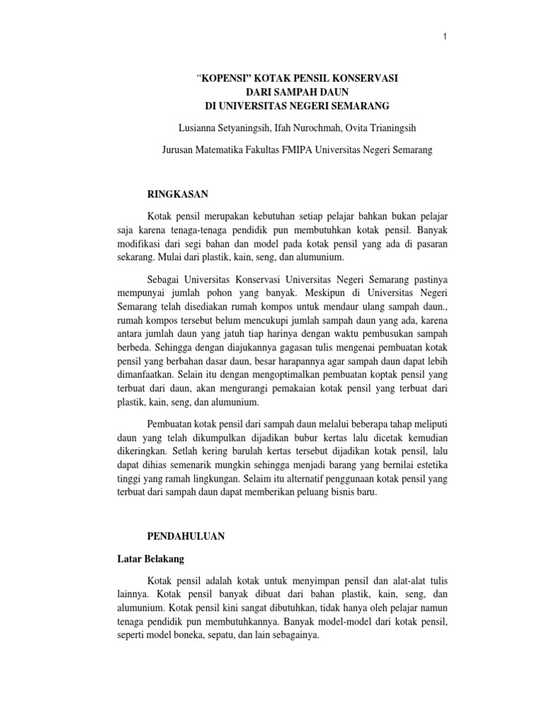 Kopensi Kotak Pensil Konservasi Dari Sampah Daun