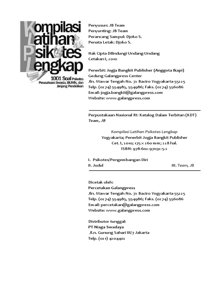 Jual BUKU KOMPILASI LATIHAN PSIKOTES LENGKAP - JB - Kab. Banyumas - JOGJA AGENCY PURWOKERTO | Tokopedia