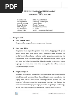 RPP Gambar Teknik Otomotif 3.1-4.1_Pertemuan 1-2 Ganjil.docx - RENCANA PELAKSANAAN PEMBELAJARAN A Identitas Program Pendidikan meliputi Nama Sekolah | Course Hero