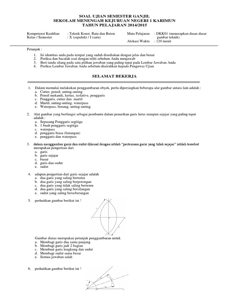 Soal Ujian Semester Ganjil Sekolah Menengah Kejuruan Negeri 1 Karimun TAHUN PELAJARAN 2014/2015