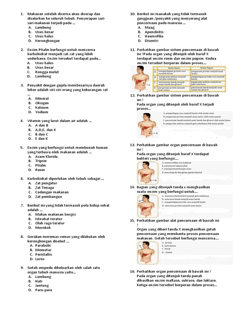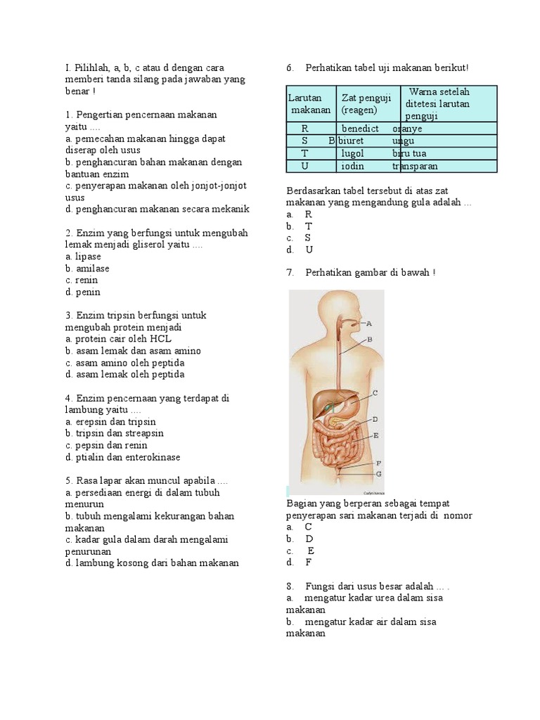 Soal dan pembahasan sistem pencernaan manusia (Biologi) | Usaha321.net