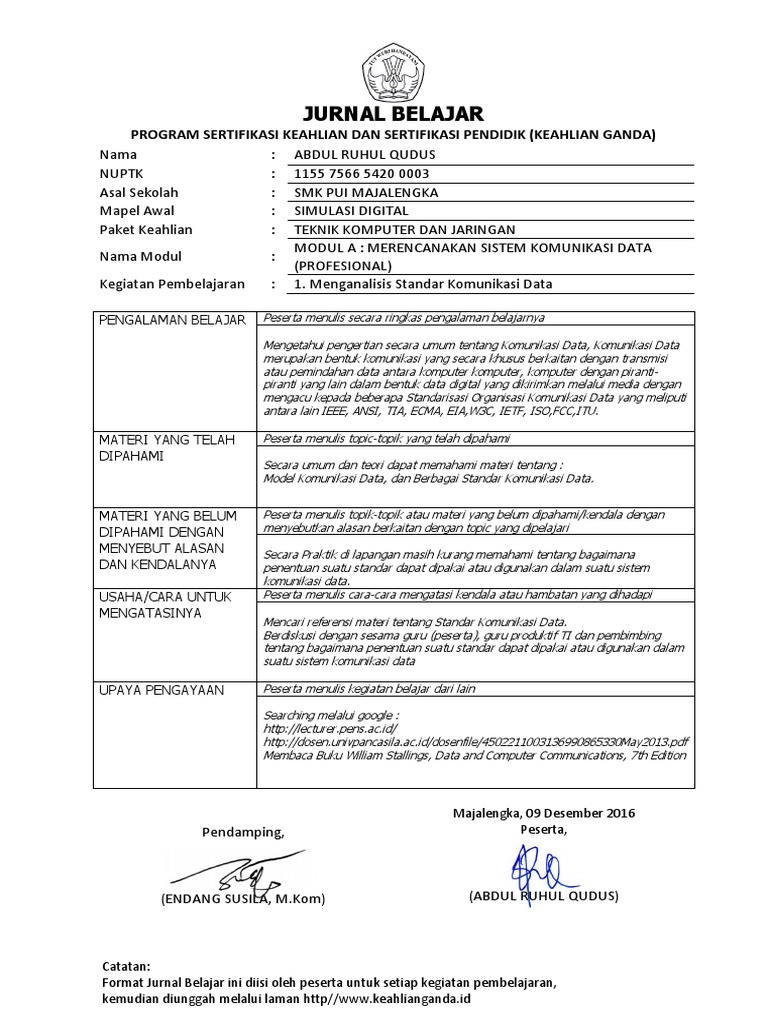 ARQ_F-03 Jurnal Pembelajaran Profesional_A01_Menganalisis Standar Komunikasi Data