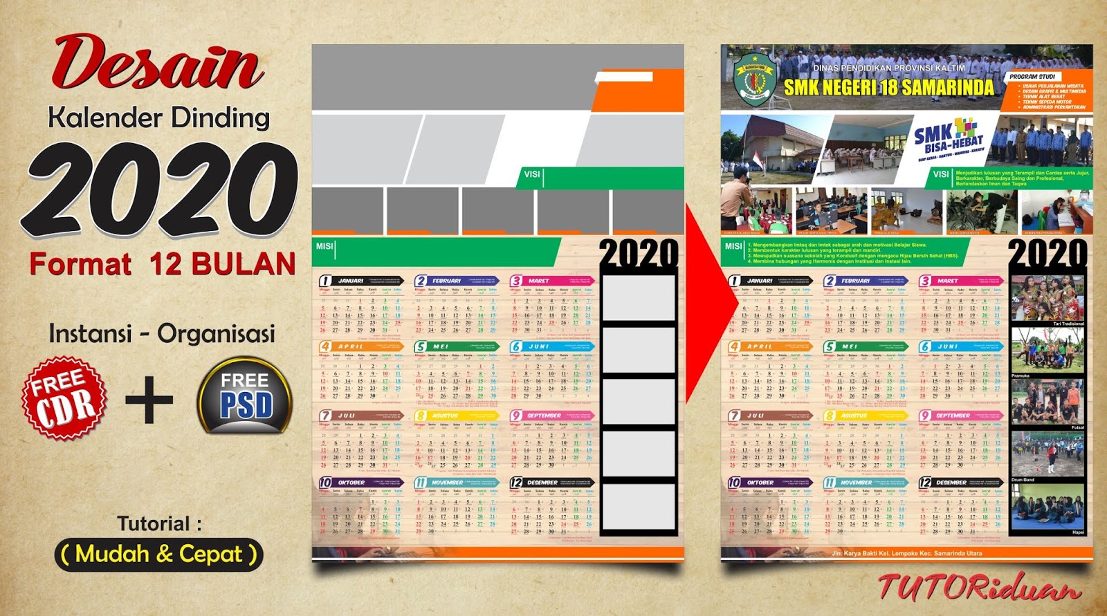 Template Kalender Dinding 2020 Organisasi Format CDR dan PSD - TUTORiduan.com