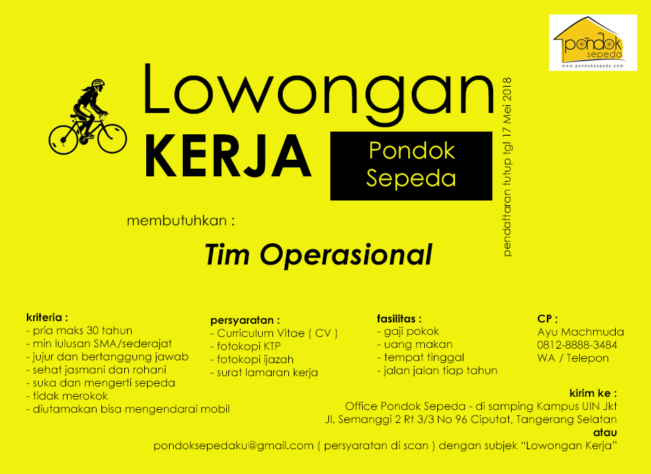 Lowongan Kerja Pondok Sepeda 2018 - Pondok Sewa Sepeda Jakarta
