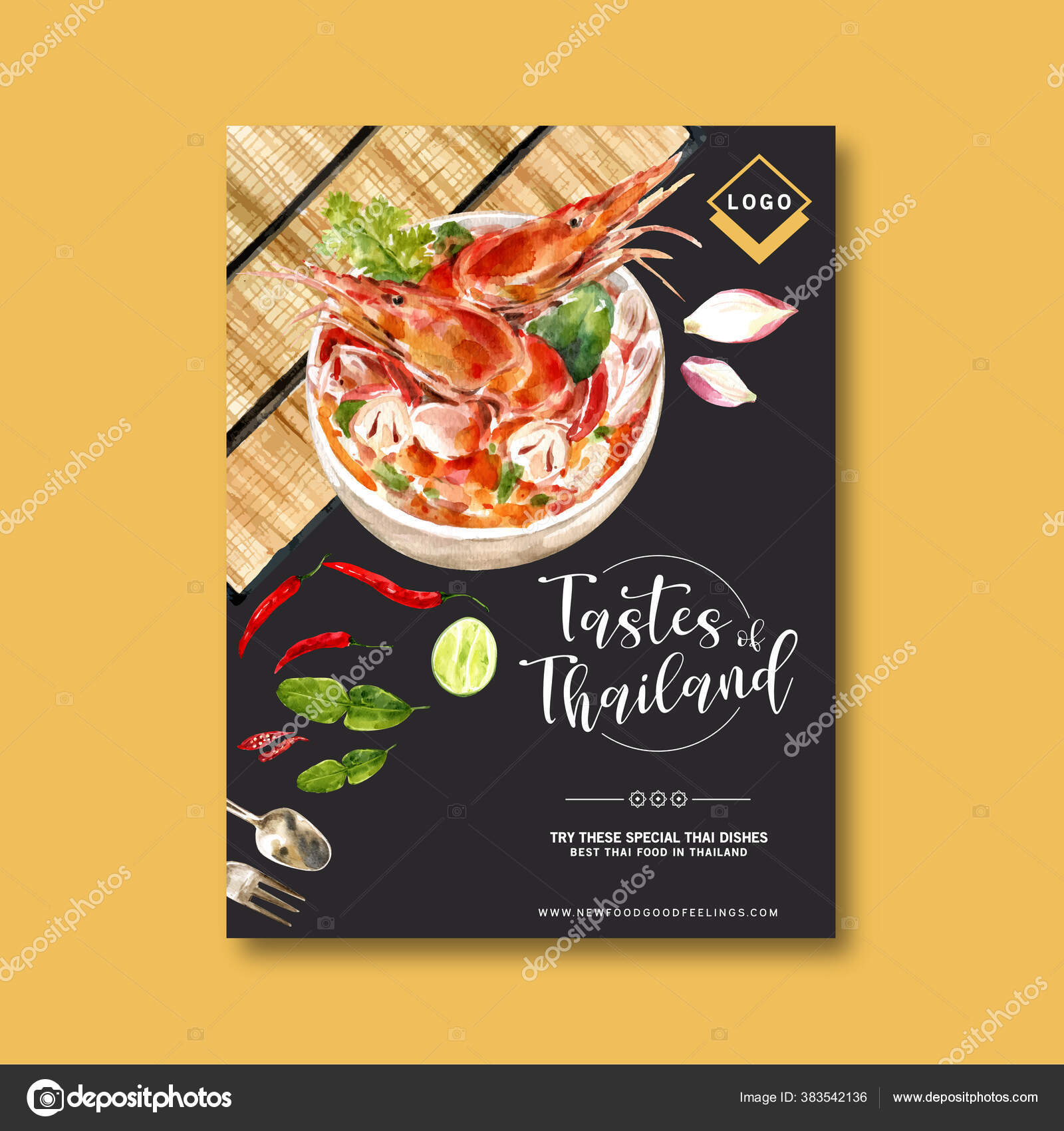 Gaya Thai Poster Makanan Template Desain Dengan Teks Vektor Ilustrasi — Stok Vektor © photographeeasia #383542136