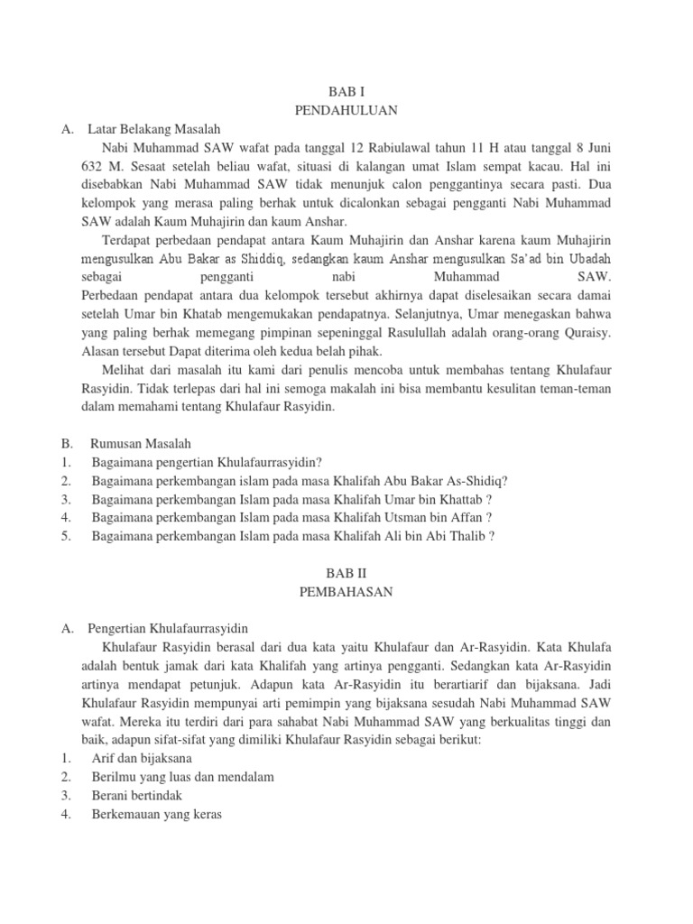 Makalah Khulafaur Rasyidin Download DOC | PDF Lengkap
