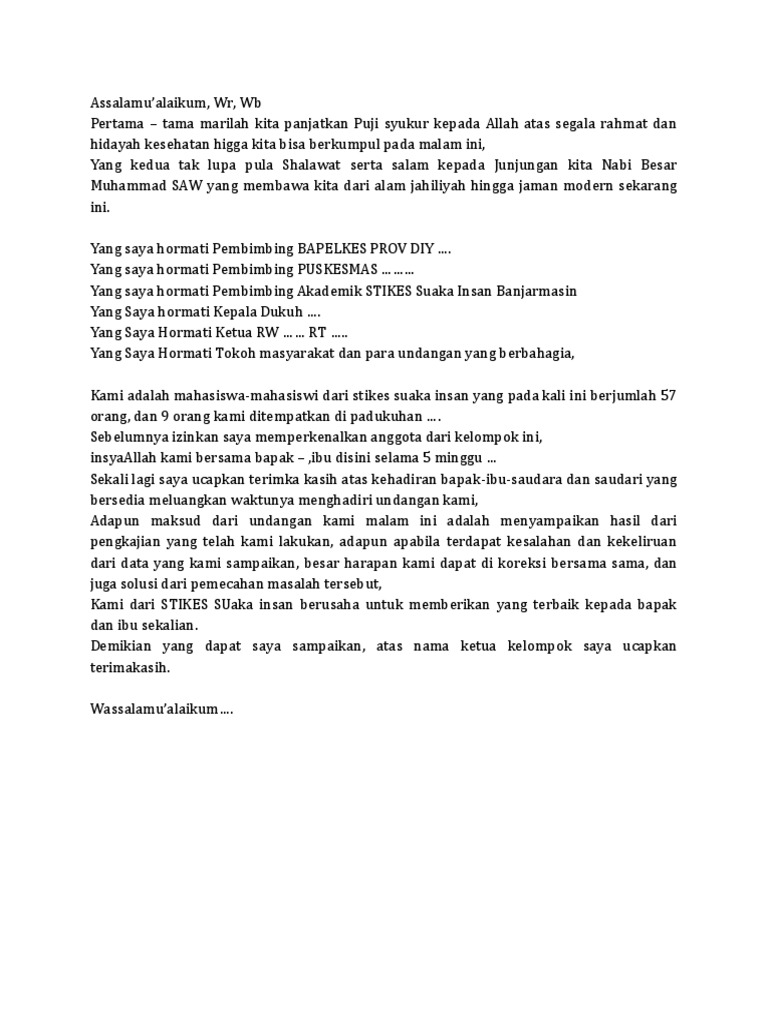 Contoh Teks Naskah Pidato Kata Pengantar Sambutan Ketua Rt Dalam Rapat | tipstriksib