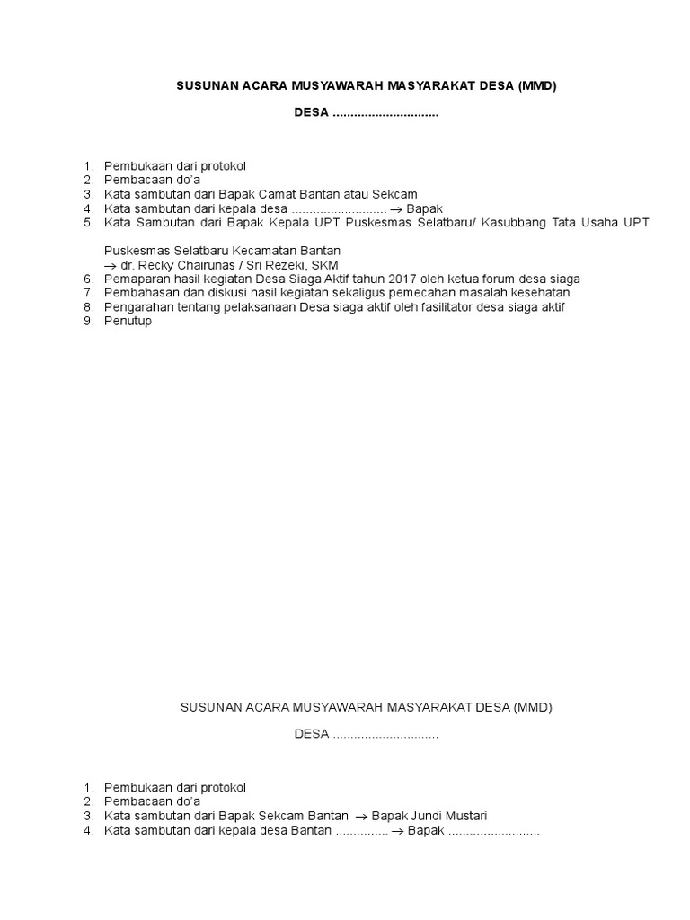 Susunan Acara Musyawarah Masyarakat Desa