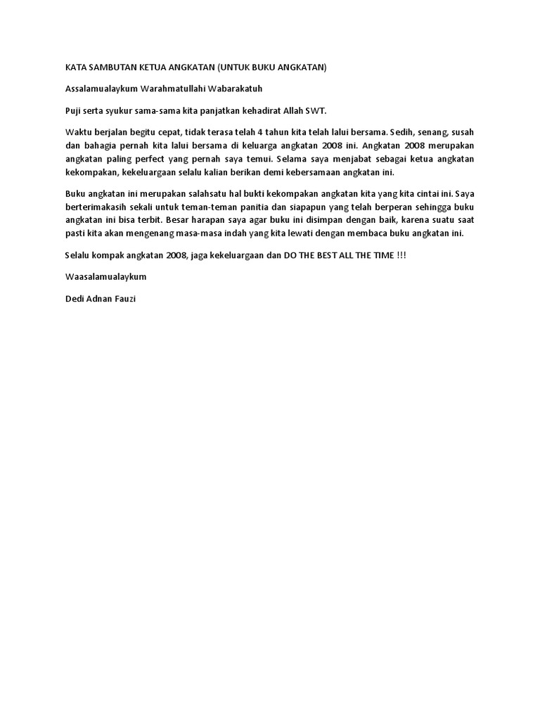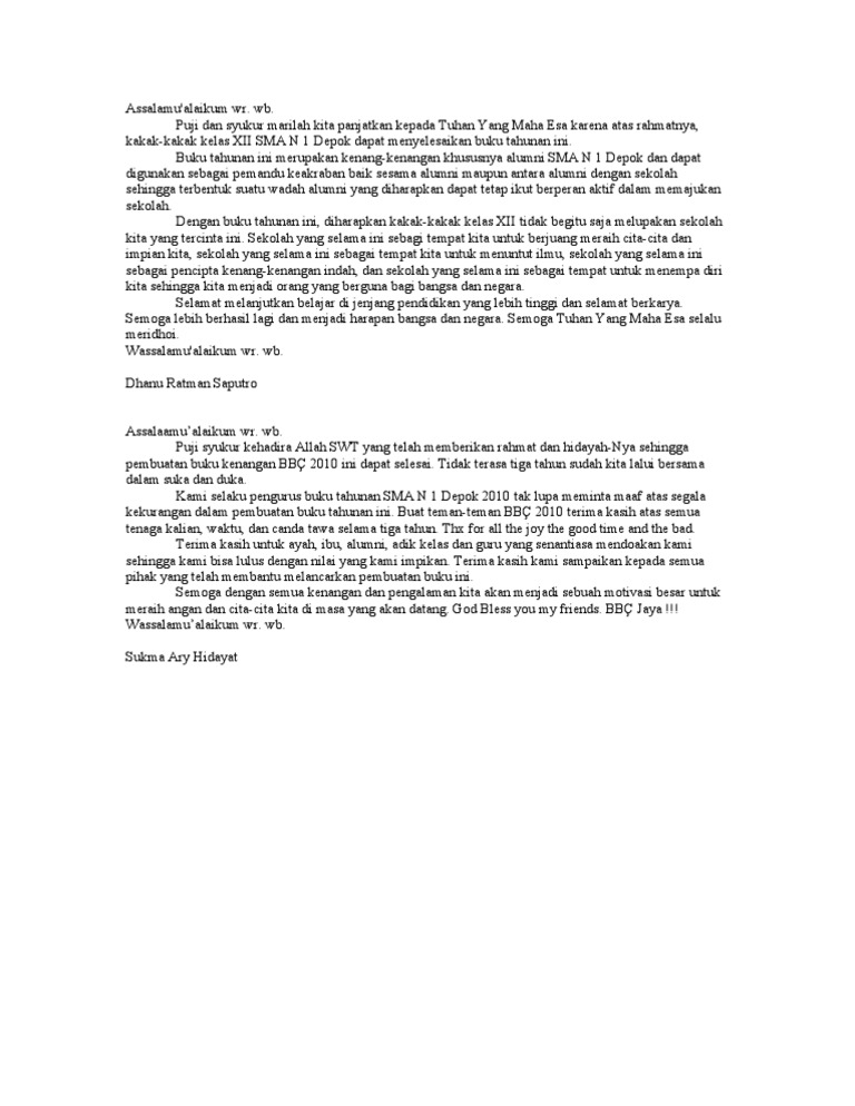 Contoh Kata Sambutan Yearbook