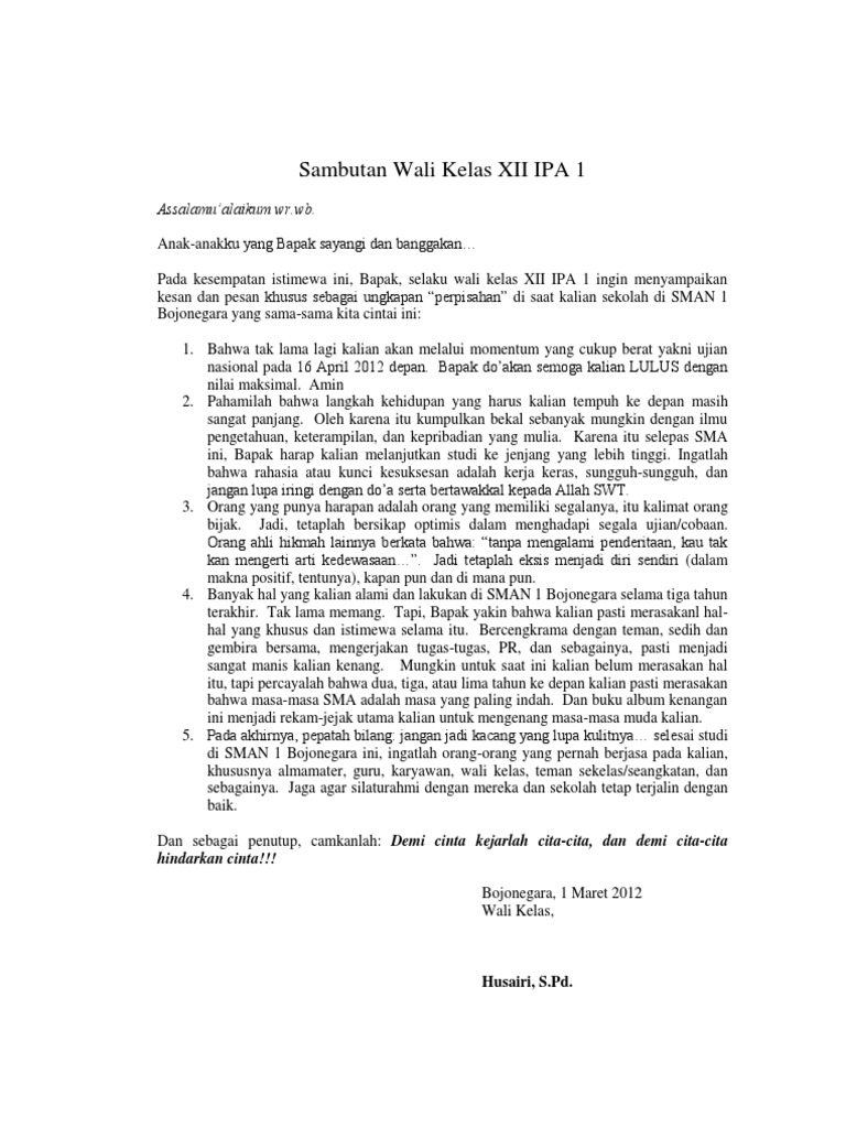 Kata Sambutan Wali Kelas | berita terbaru hari ini