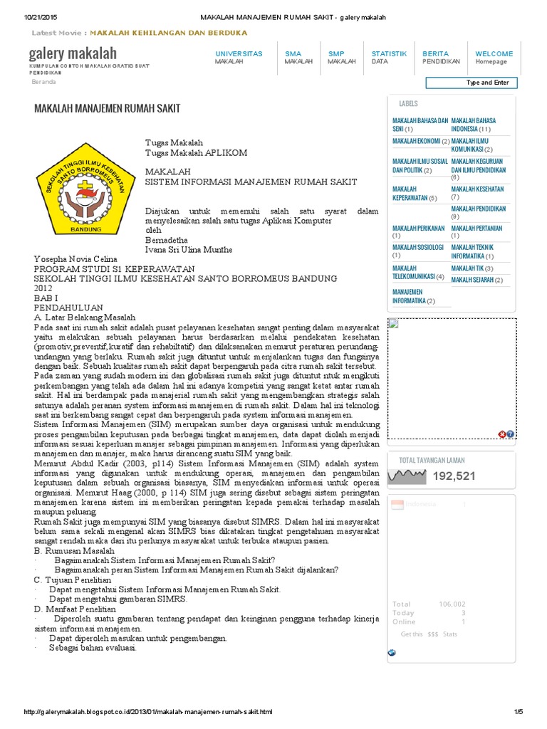 Makalah Manajemen Rumah Sakit - Galery Makalah