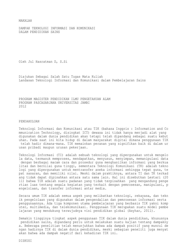 DOC) MAKALAH DAMPAK TEKNOLOGI INFORMASI DAN KOMUNIKASI (TIK) TERHADAP AKTIVITAS PENDIDIKAN SEKOLAH DASAR MAKALAH DAMPAK TEKNOLOGI INFORMASI DAN KOMUNIKASI (TIK) TERHADAP AKTIVITAS PENDIDIKAN SEKOLAH DASAR | ancha smart - Academia.edu
