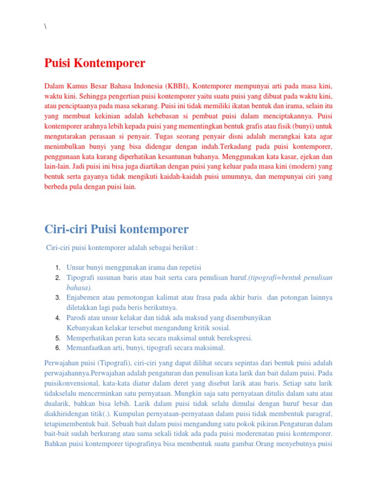 DOC) Puisi Kontemporer | rif qi - Academia.edu