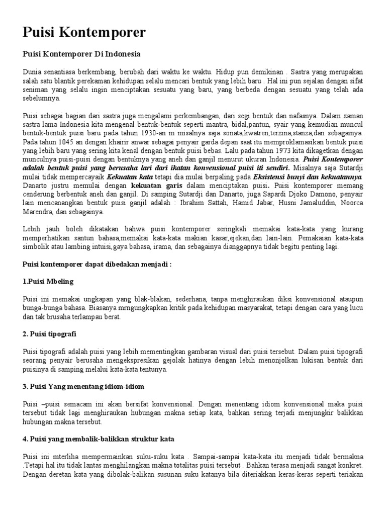 DOC) Puisi Kontemporer | pondra pratama - Academia.edu