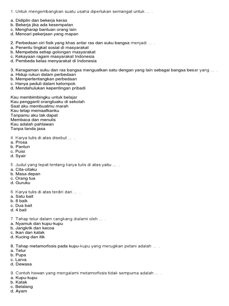 Contoh Puisi Pahlawan 2 Bait | Kumpulan soal Pelajaran 9