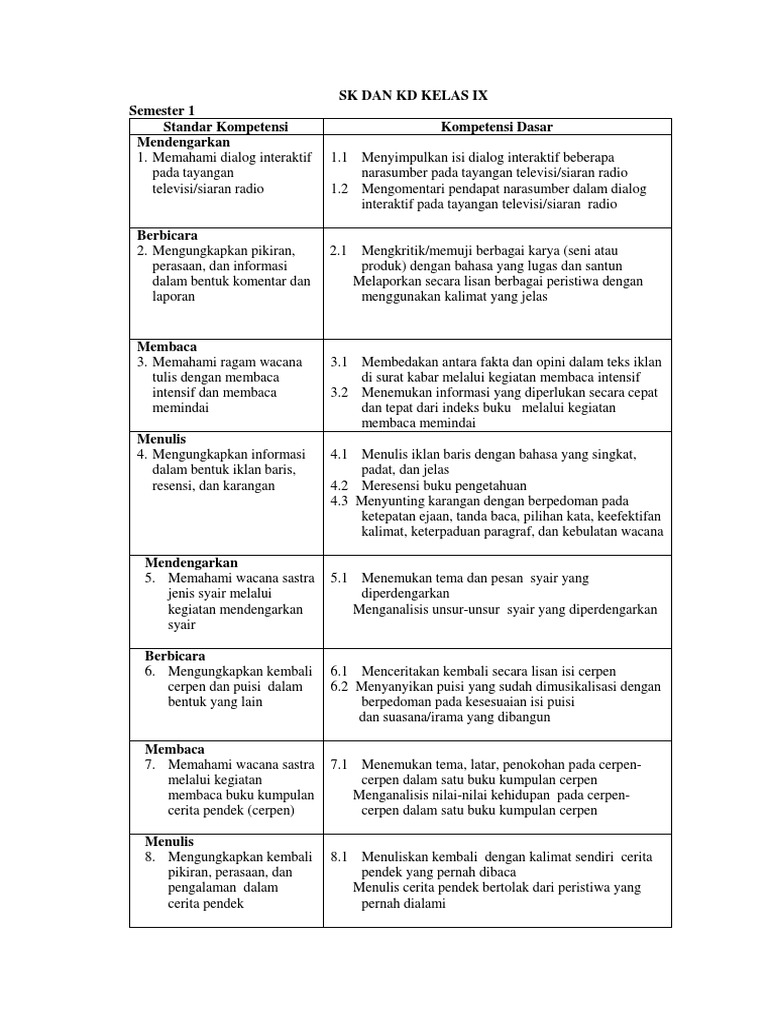 Standar Kompetensi Kompetensi Dasar Membaca