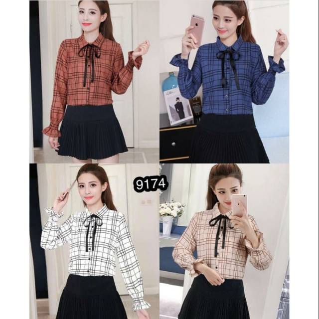 gaya ala korea/ Blus Wanita / Atasan Wanita / Fashion Wanita / Blus Korea / Top Wanita / Baju Kekinian / Atasan Murah / kemeja | Lazada Indonesia