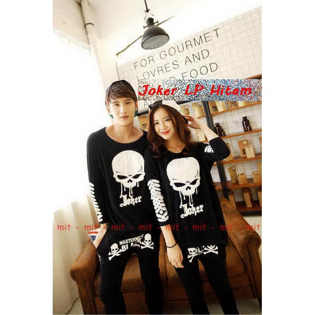 Lengan panjang hitam gambar tengkorak katun halus kaos murah joker pasangan couple best seller laris | Shopee Indonesia