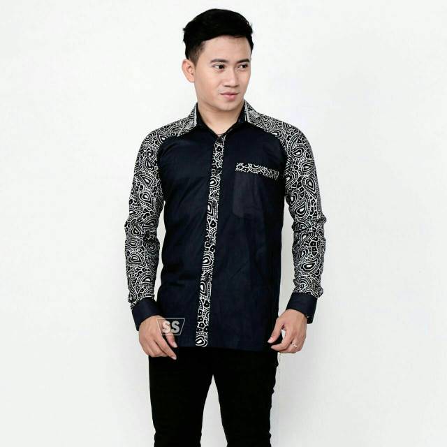 KEMEJA ATASAN BAJU BATIK PRIA COWOK HITAM PUTIH LENGAN PANJANG | Shopee Indonesia