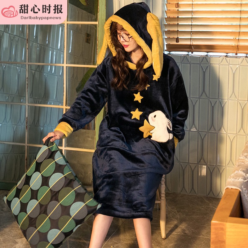 Baju Tidur Piyama Wanita Bahan Coral Velvet Tebal Gambar Kelinci Lucu Untuk Musim Dingin | Shopee Indonesia